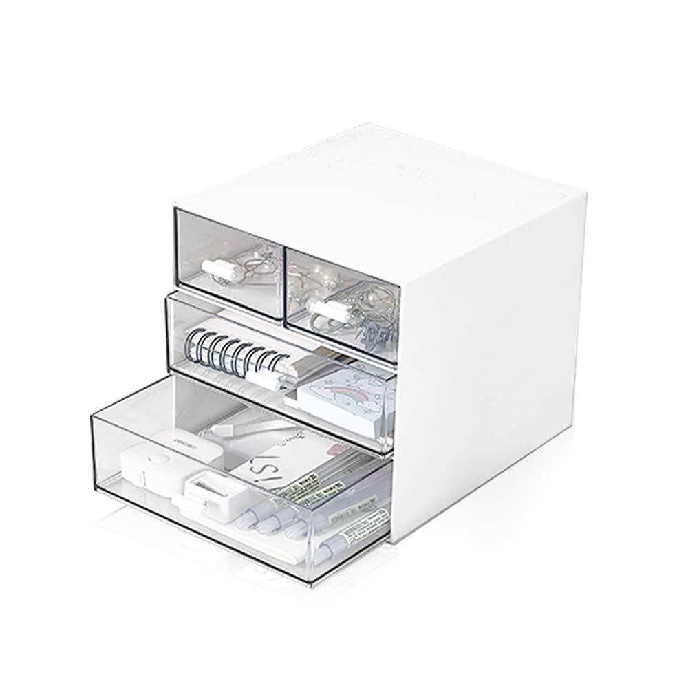 JFAN簡繁 収納ケース 引き出し 収納 小物 卓上 透明 収納ボックス (4引出し) 白