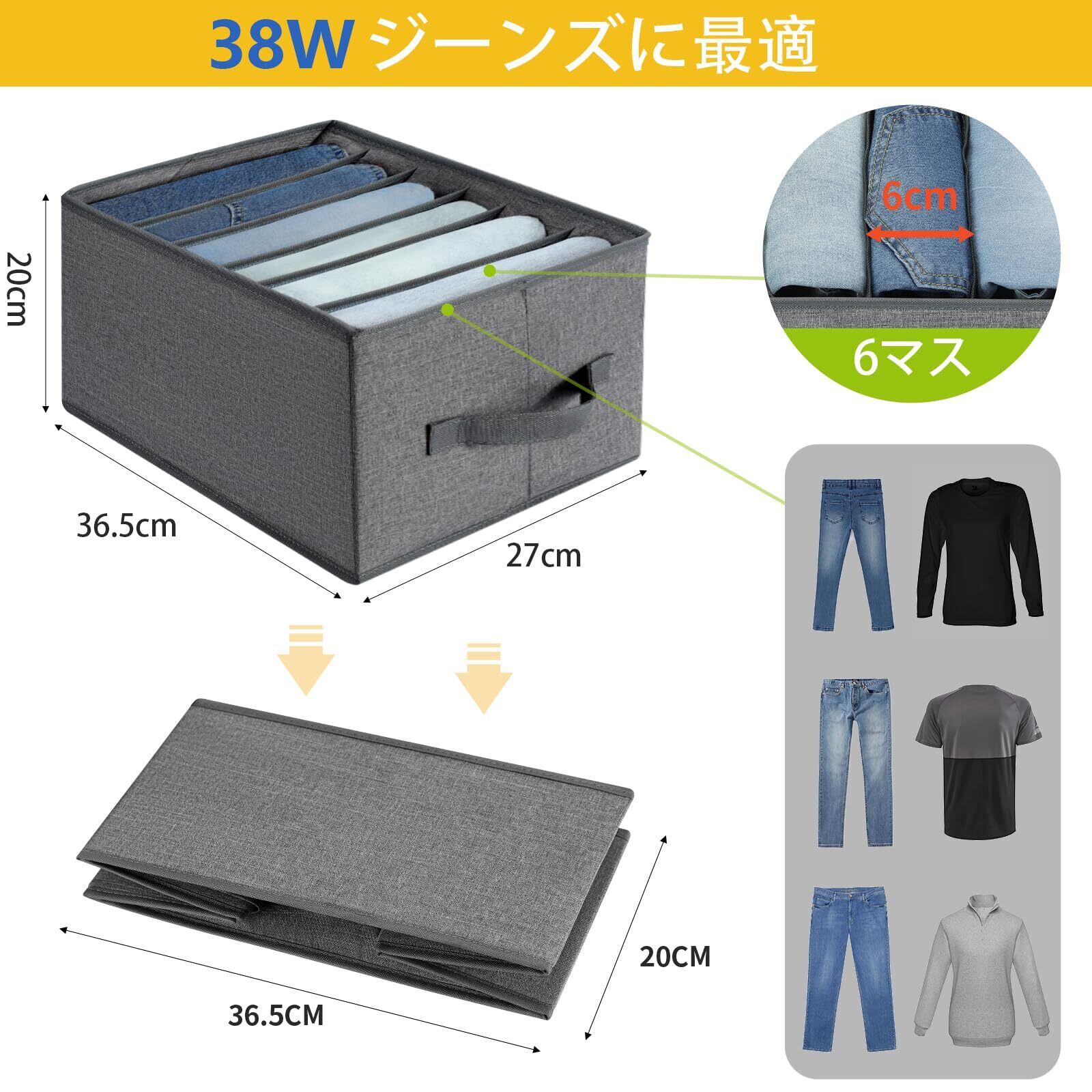 【大容量で実用的】サイズ:36.5x27x20cm、6マス。ジーンズ・シャツ(長袖)・セーター・マフラー・タイツ・ワンピース・下着などを種類別に収納でき使いやすくて見栄えもキレイ、取り出しラクラク。使用しないときは簡単に折りたためるので、スペースを節約でき、軽量で実用的です。