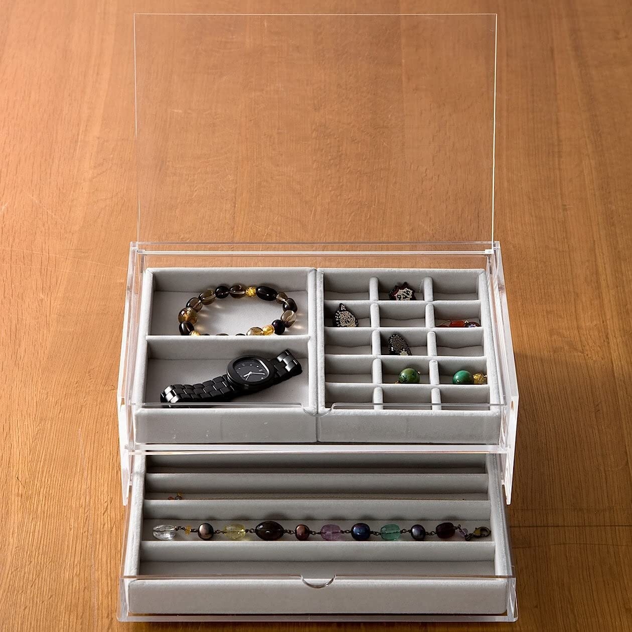 2段まで積み重ねができる、「見せる」収納に適した透明アクリルケースです。