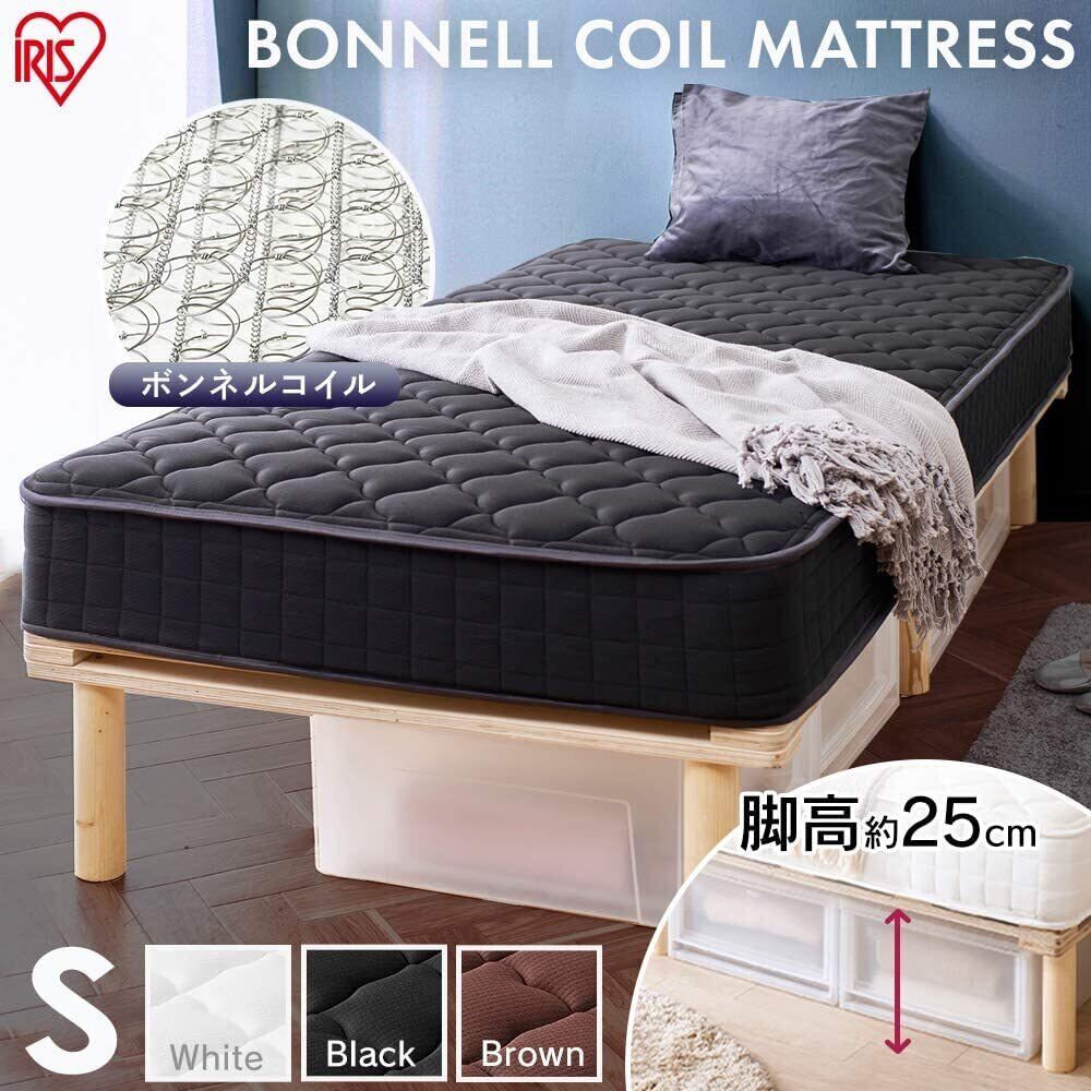 【脚付きボンネルブラウンS+収納セット】アイリスオーヤマ 脚付きマットレス シングル ボンネルコイルマットレス シングルベッド AMT-B95 ブラウン + アイリスオーヤマ 収納ケース3個セット ホワイト/クリア Lサイズ 【アイリスオーヤマ 新生活 2023】
