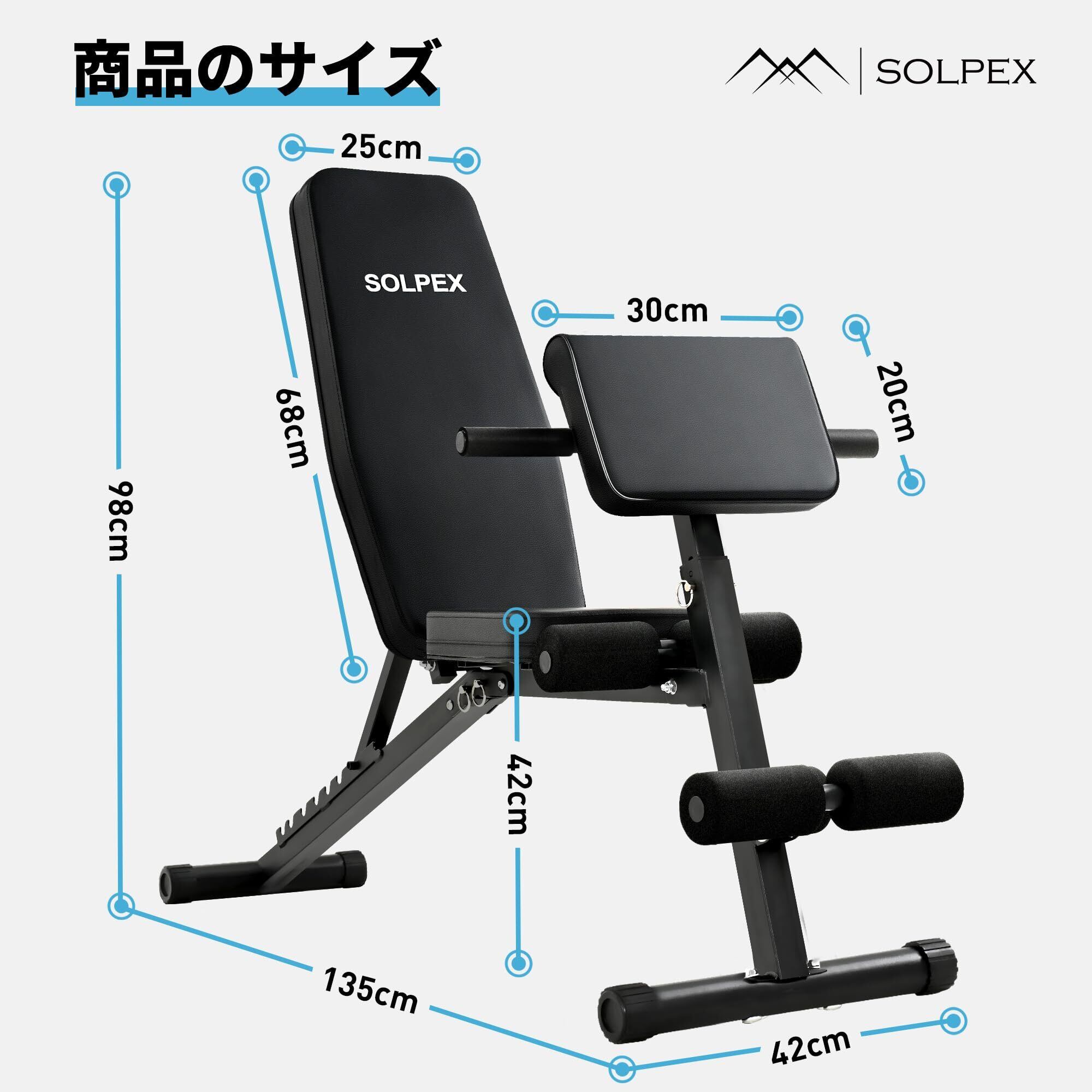 Solpex トレーニングベンチ インクラインベンチ 腹筋 ベンチプレス 筋トレ ベンチ 折り畳み ダンベルベンチ 可変式角度調節簡単 ベンチ台 デクラインベンチ フラットベンチ 腹筋 背筋 シットアップベンチ