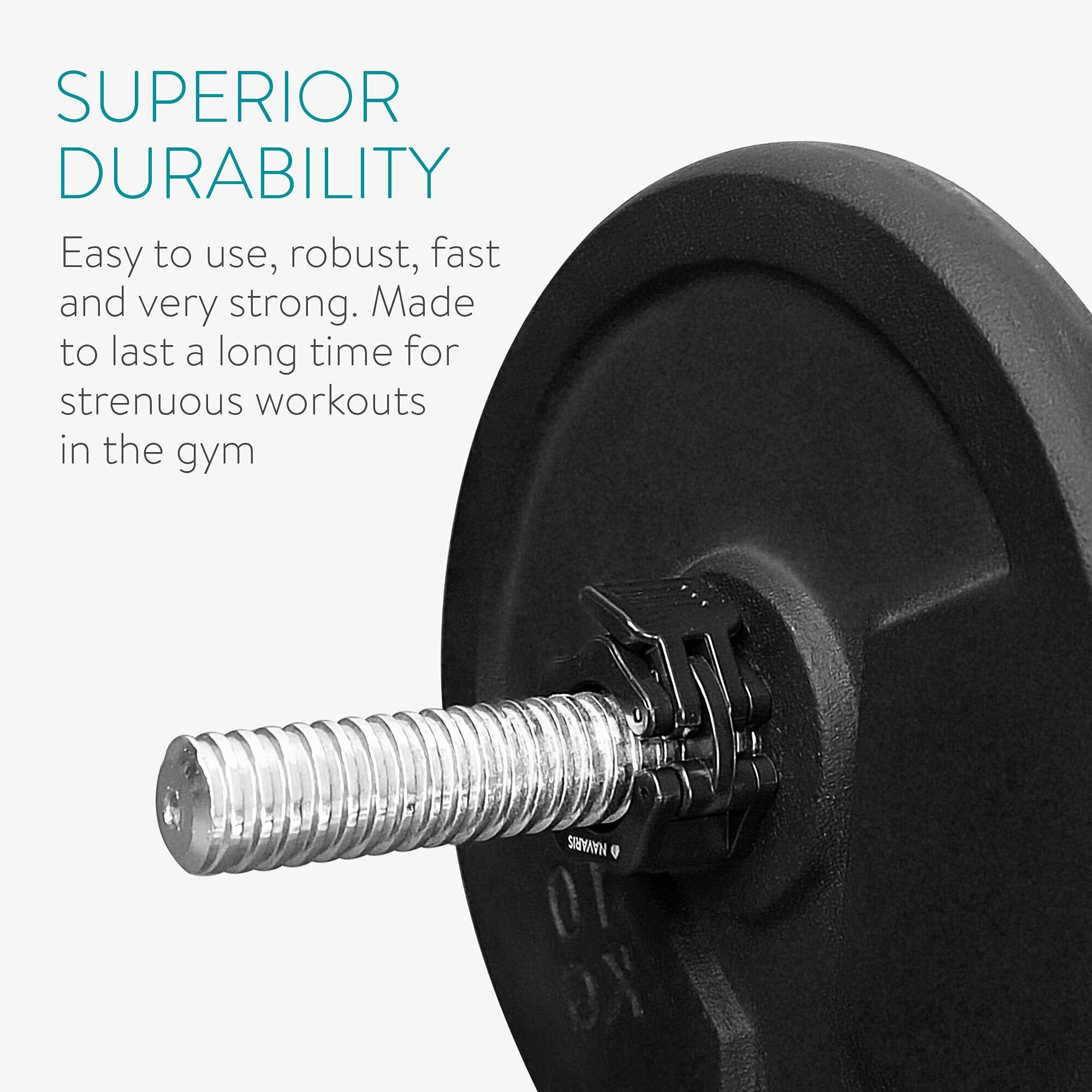 トレーニングサポーター: Navarisのバーベルクランプでダンベル プレートをバーベルにしっかりと固定、保持し、いつものトレーニングをより安全に行いましょう。ウェイトトレーニングのエクササイズをますます快適に効率良くし、トレーニングのレベルをアップ!