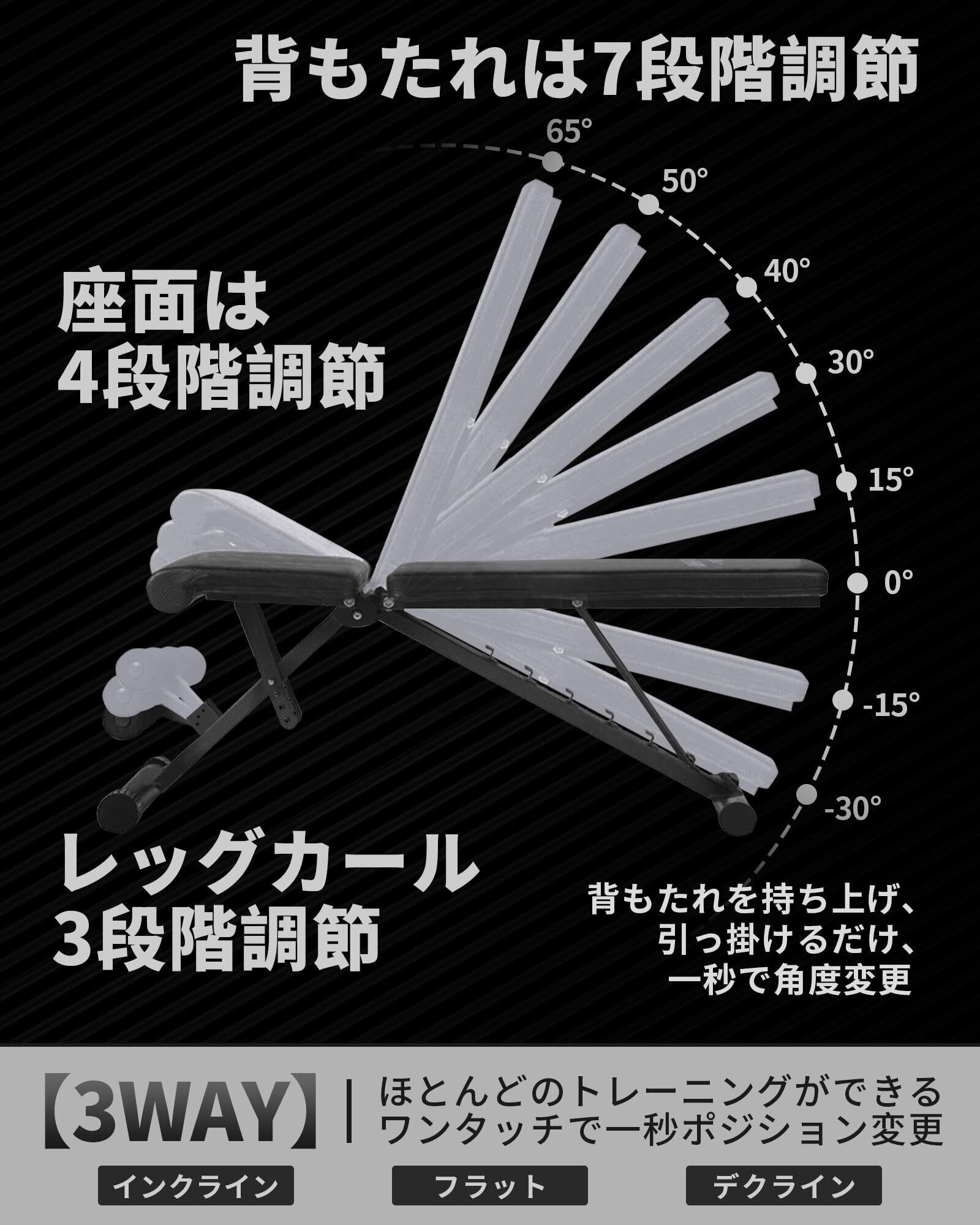✅【角度調整可能】:一秒で角度調整可能!バックシート7段階、シートクッション4段階、レッグカール3段階!コンパクトなデザインで、鍛えたい部位やメニューに合わせて自由に変更することができます。✅【ヘッドレストを搭載】 しっかり頭を支えてくれるので、従来よりも力が入れやすく、より快適なトレーニングが期待できます。