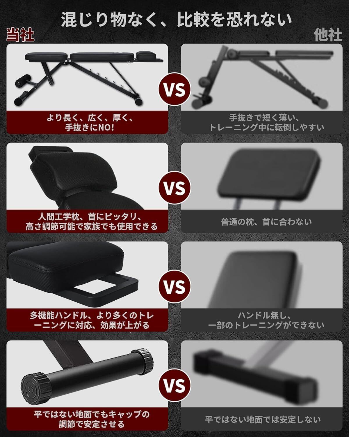 トレーニングベンチ インクラインベンチ デクラインベンチ 7段階調節 折り畳み式 耐荷重300KG 組立不要 フラットベンチ 収納便利 ホームジム ベンチプレス 筋トレ 日本語説明書付き 007/008