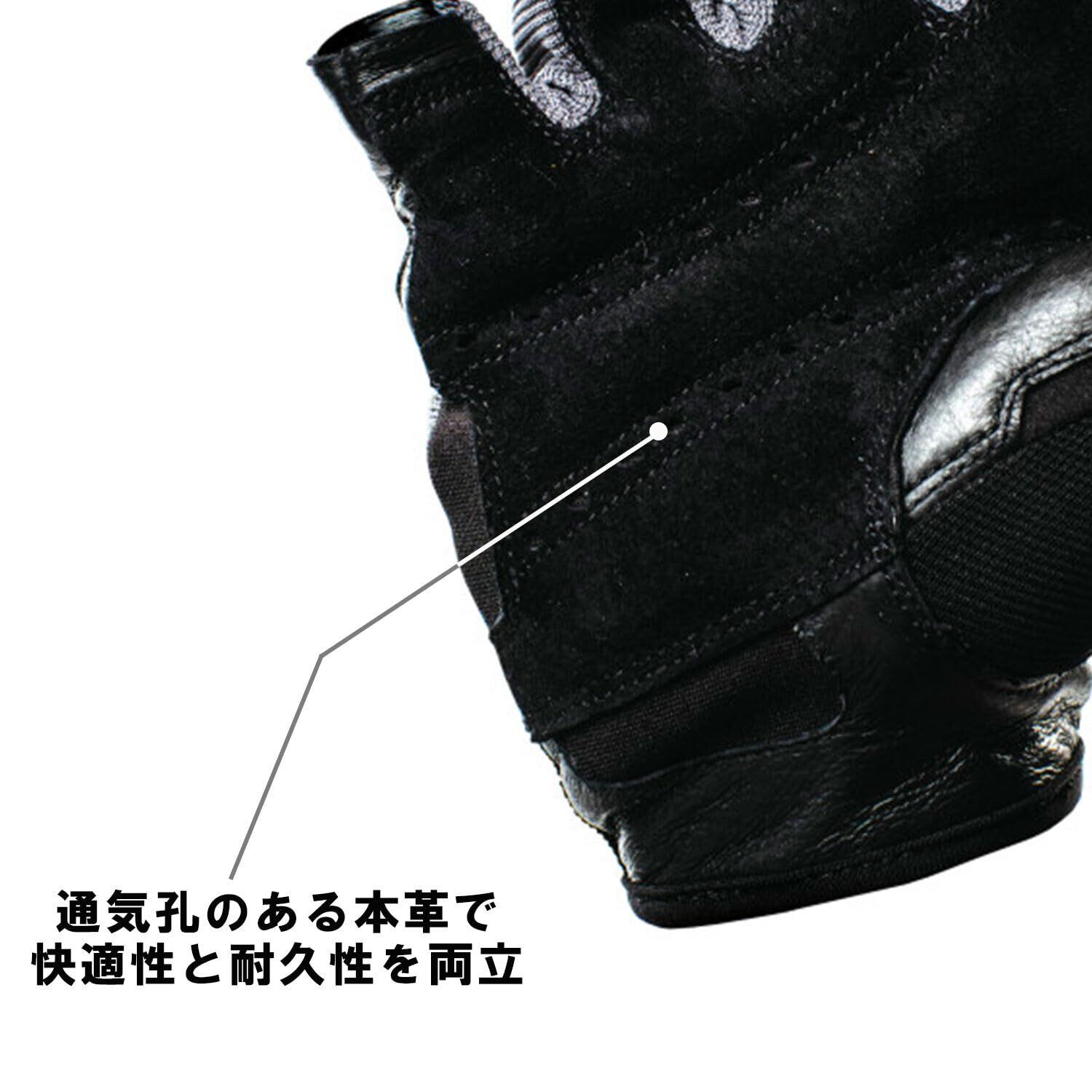 【優れた耐久性と通気性を両立し快適な使い心地に】手のひら部分には通気孔の開いた本革を採用し、器具を握った際にこすれる親指部分は二重構造によりさらに補強。