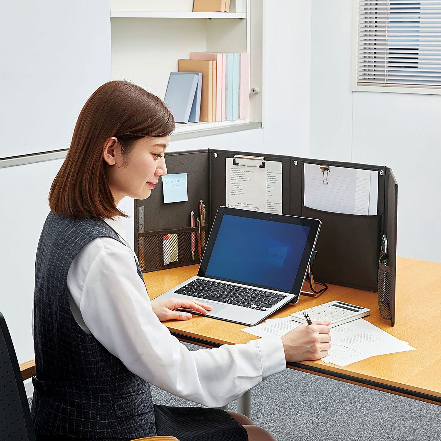 テレワークや飛沫対策に! 開いて置くだけ! 簡単設置! どこでもマイブースパーテーション。即席のパーソナルスペースに早変わり! 高さだしパーツを取り付けて、約51.5cm のパーテーションにも。シンプルなデザインで使いやすい持ち運びラクラク!