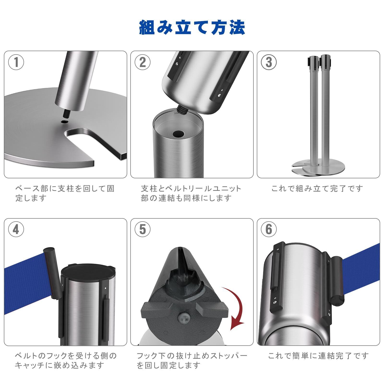 【軽量・安全】当社の適格請求書の発行が可能、必要な方はご連絡ください。当社のポールスタンドのサイズ:高さ (約)91cm、ベース(約)32cm。本体材質:ステンレス。ベルト色:ブルー、ベルト長さ:約300cm。每本隔離杆の重さは約8KGで、店舗の入り口、社交イベント、展示会、病院、学校など、さまざまな場面に適しています。