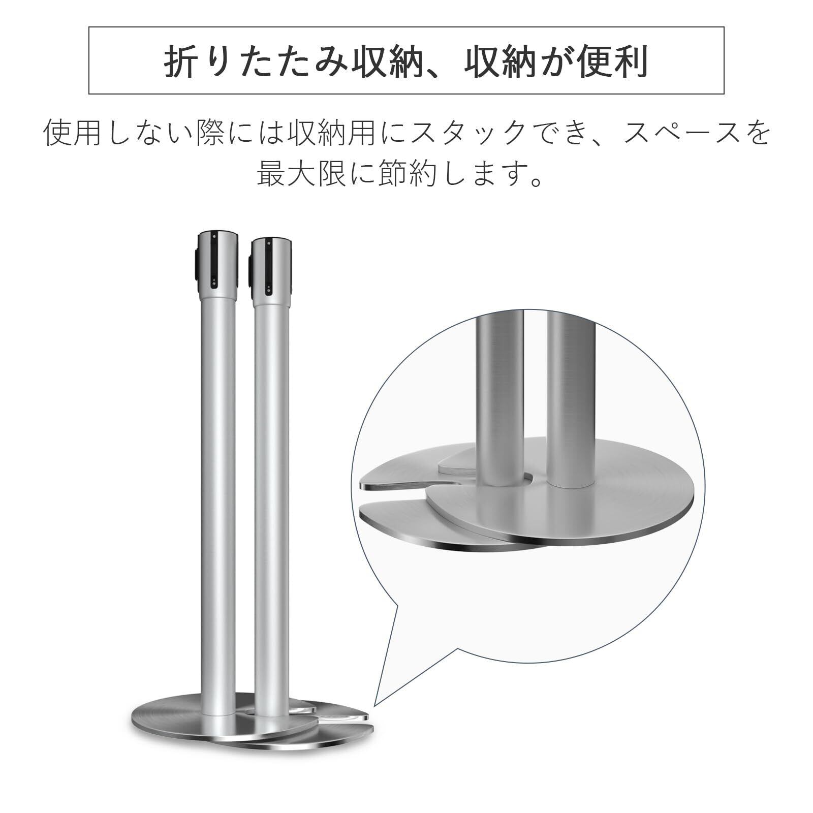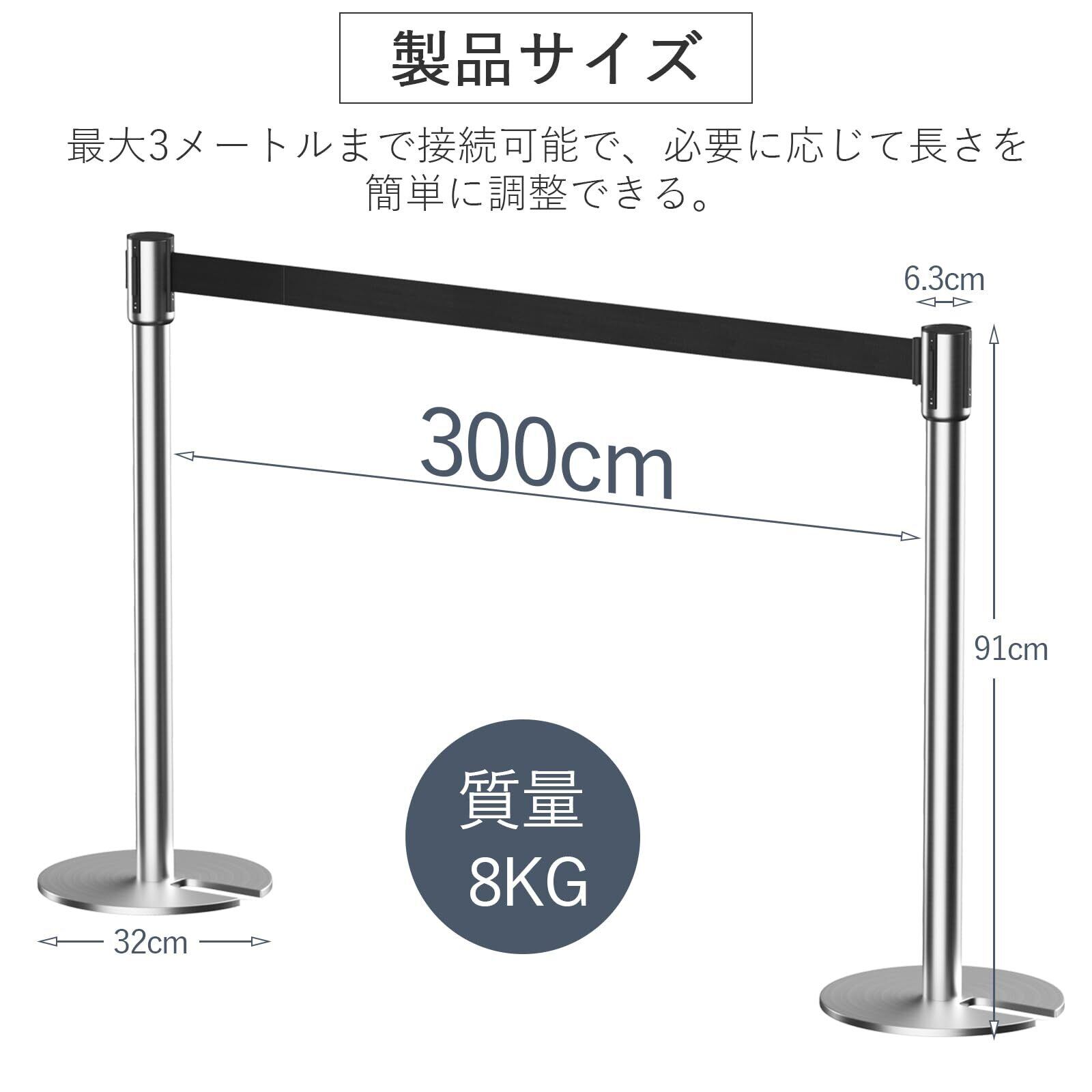 Venergie ベルトパーテーション ガイドポール ポールパーテーション 2本セット シルバーポール(ベルトカラー:黒) 長さ 3m ポールスタンド ベルトパーティション ベルト外れ防止機能付 4方向連結可能 スタッキング 組み立簡単 滑り止めデザイン 業務用