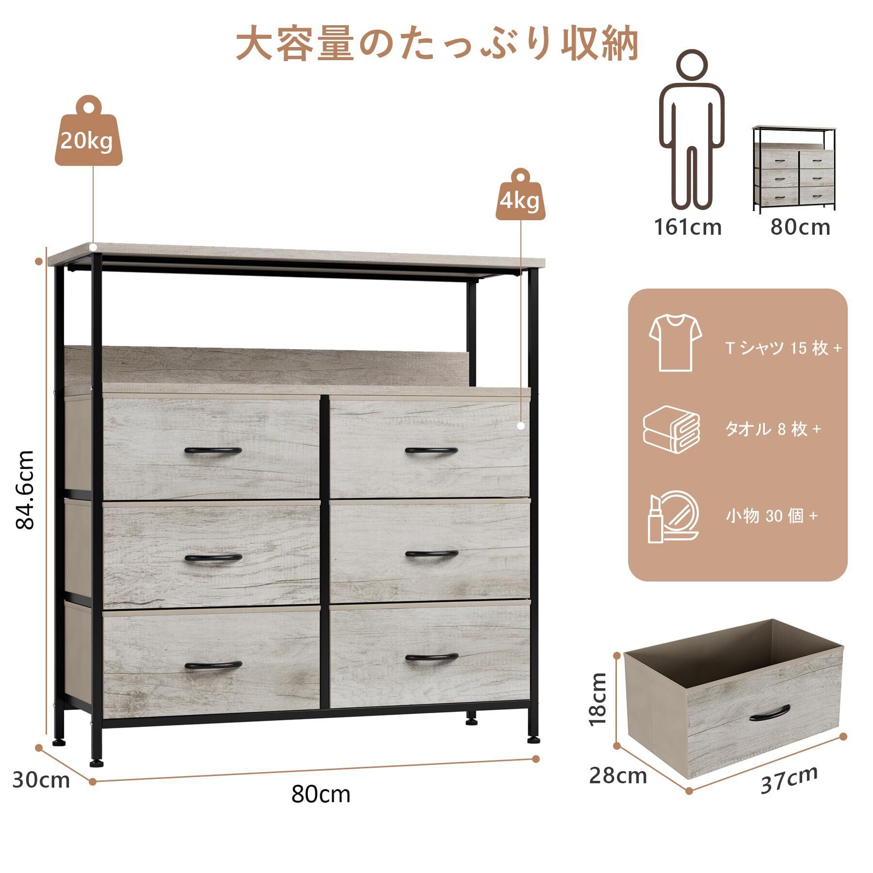 Nicehill棚付き収納チェストには6つの引き出しがあり