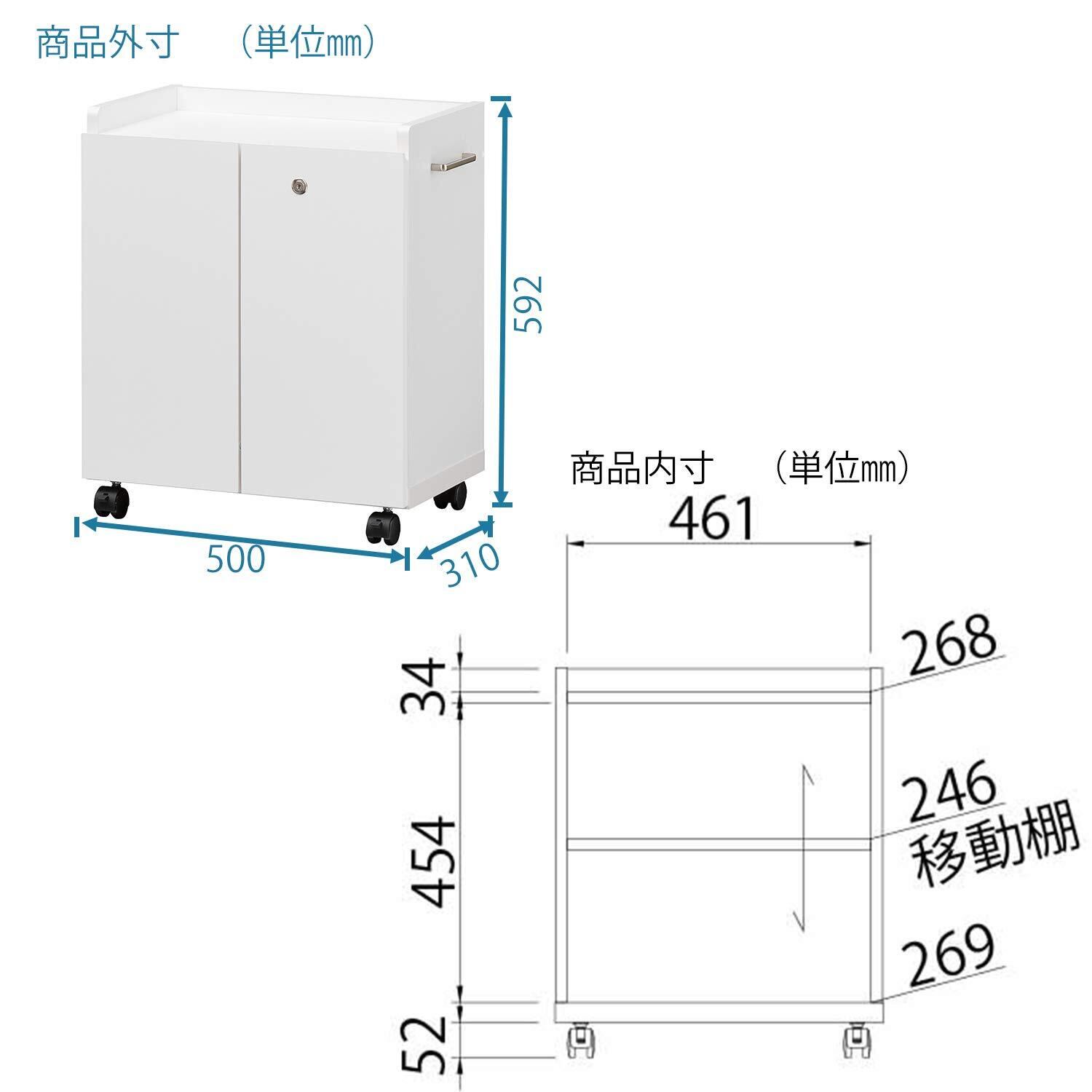 【商品説明】鍵付き扉の書類の整理に便利なサイドワゴン。デスク下の足元に収まる外寸幅50cm、高さ59.2cmの邪魔にならないサイズ。白井産業の他の商品は「白井産業(shirai)のストアを表示」をクリック。