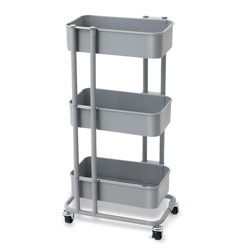 アイリスプラザ キッチンワゴン 調味料ラック バスケットラック スリム 収納ワゴン 3段 幅27.3 x 奥行38.5 x 高さ78.1 cm キャスター付 グレー
