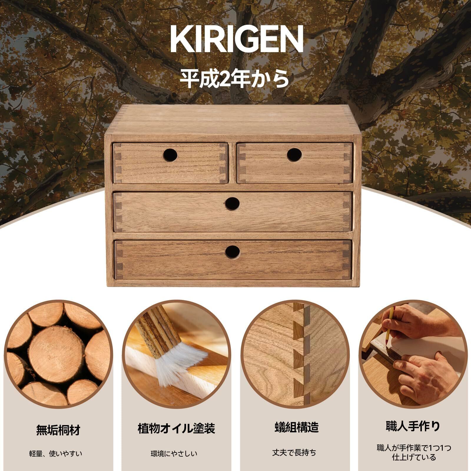 KIRIGEN 蟻組仕様 木製収納ボックス おしゃれ 卓上 キャビネット 小物 桐製 完成品 引出付き A4対応 植物オイル塗装仕上げ 3段 ブラウン WJG-34-DBR