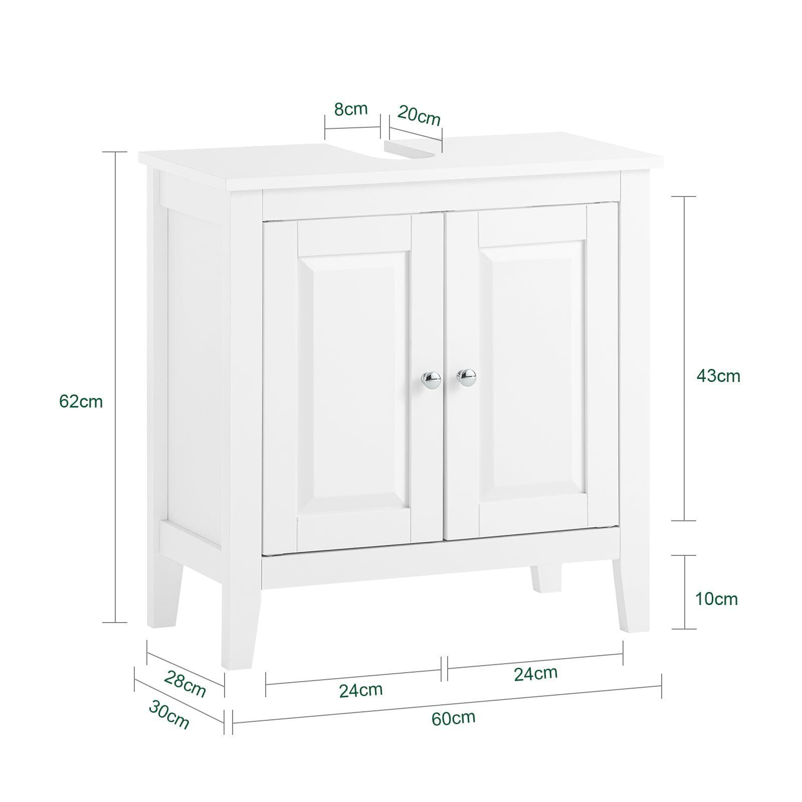 SoBuy 洗面台 洗面化粧台 収納 洗面所収納キャビネット おしゃれ 幅60*奥行30*高さ62cm キャビネット 洗面所収納棚 洗面ボウル下のキャビネット収納 洗面台下収納 洗面所 収納 (FRG202-W/洗面ボールは付属されてない!別途でご購入ください)