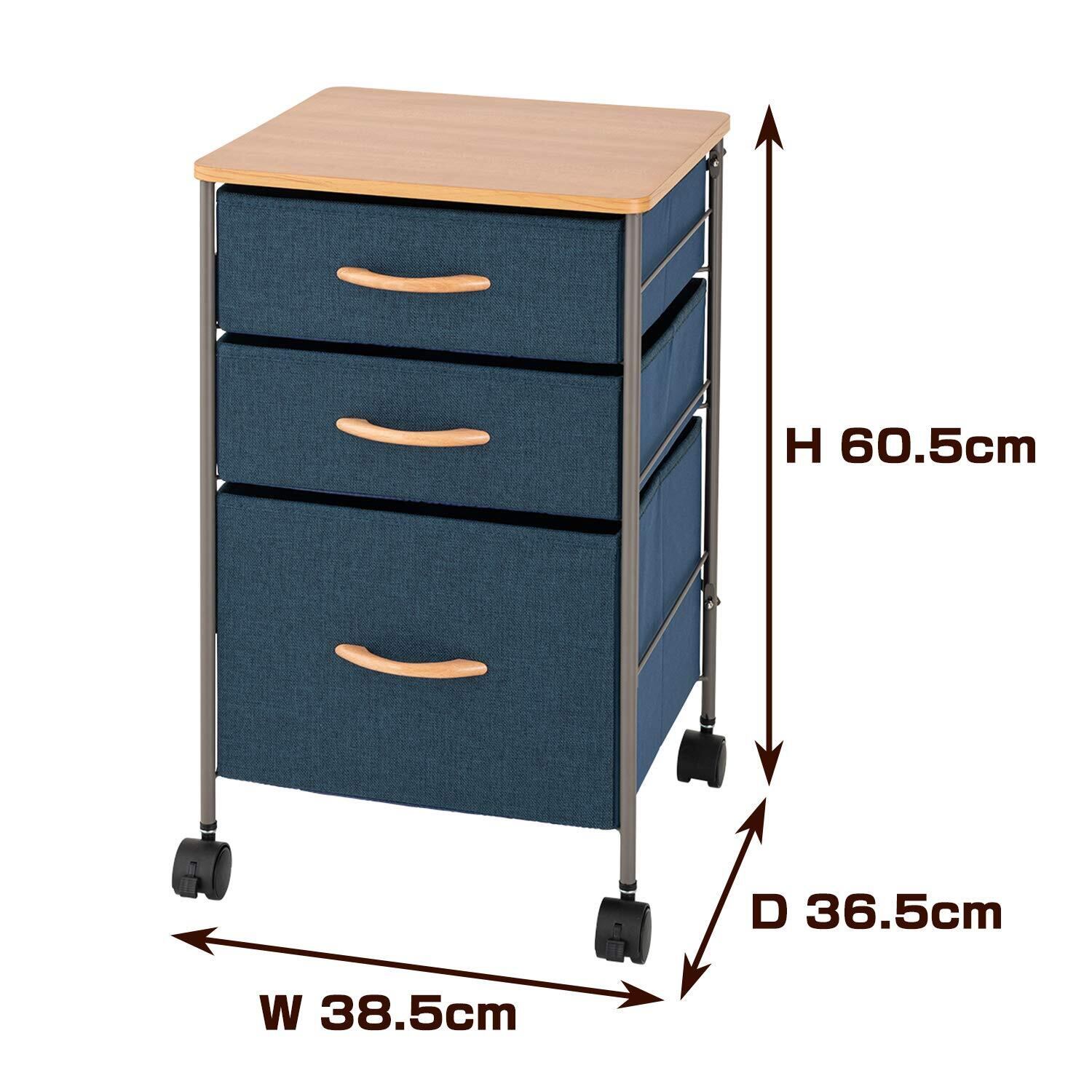 ドウシシャ 布製収納ボックス コンパクトチェスト 幅40 3段 青 軽くて便利 キャスター付き 木製天板 取っ手付き 幅38.5×奥行36.5×高さ60.5cm 通気性の良い不織布素材 深型ボックス ネイビー 子供部屋 ソファ横 CNC40-3FNV