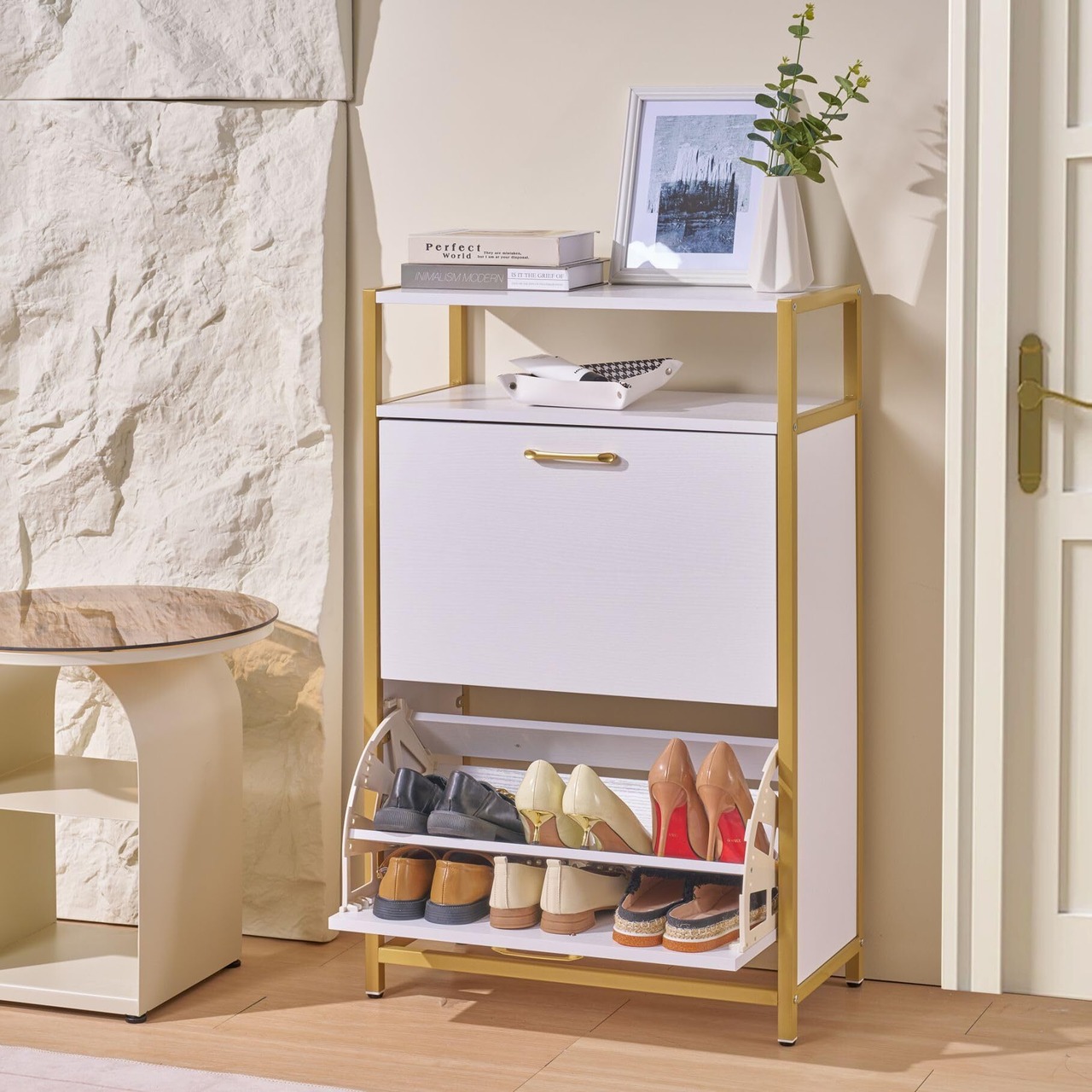 【省スペース設計】このシューズキャビネットの奥行きはわずか29cmで、狭い空間をよく活用し、多くの靴を整然に収納し、お部屋でおしゃれなスタイルを表現します。この下駄箱はフラップ扉なので、靴の取り出しが便利で、探し時間を省けます。