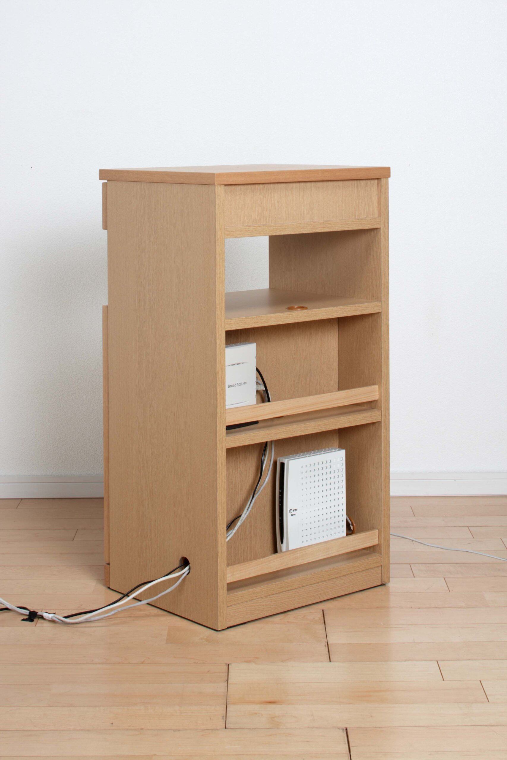 ルーターが背面にすっきり収納できるキャビネット NS-8002 ホワイトオーク