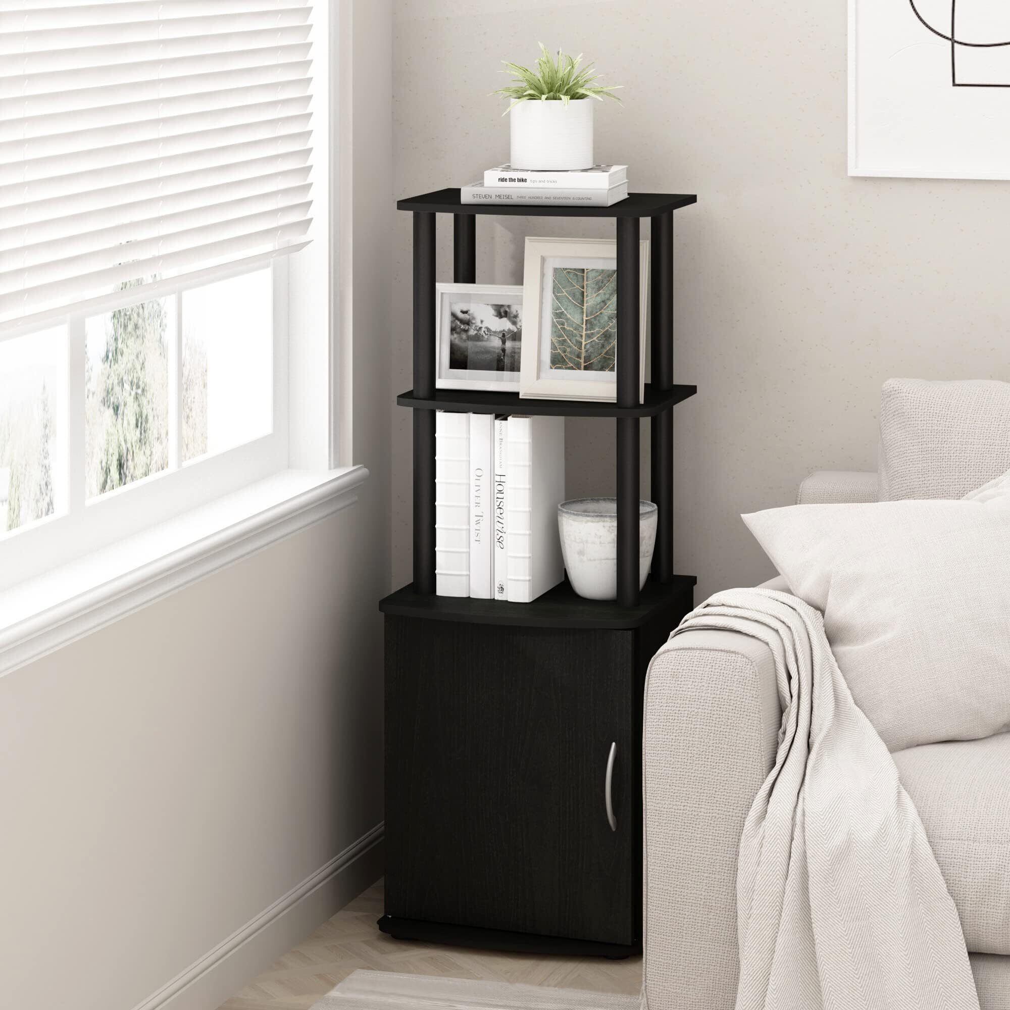 フリノ(Furinno) サイドテーブル トールタイプ ディスプレイラック 収納キャビネット付き カラー:ブラックウッド/ブラック 組み立て工具不要 【日本正規輸入品】