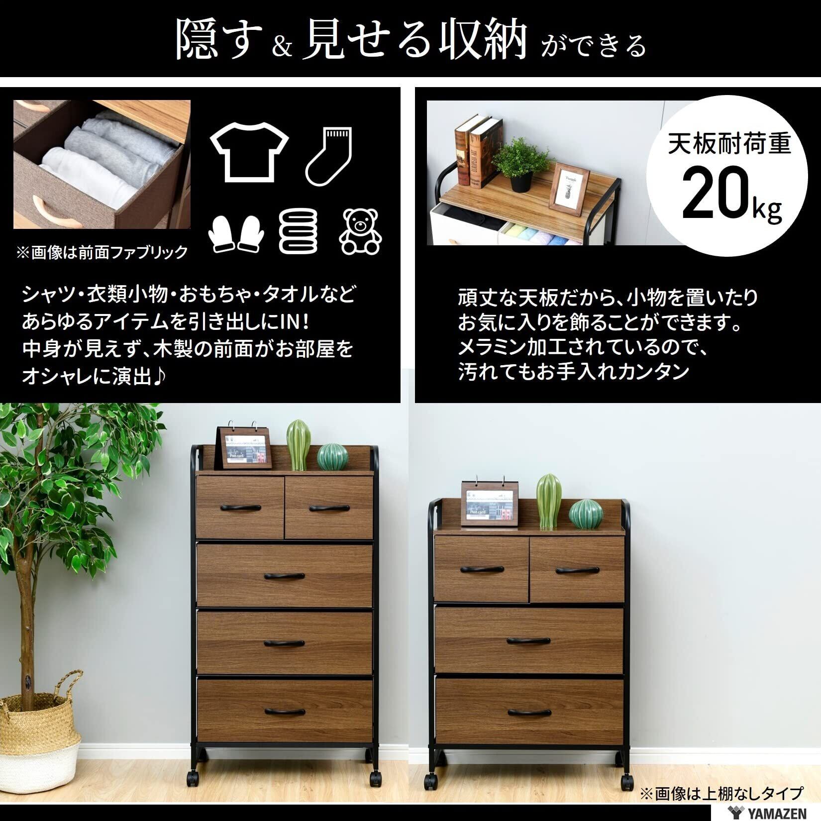 ご好評をいただいている山善のファブリックチェストから、前面木製で「上棚付き」のチェストが登場!上棚にお好きなアイテムを飾って眺められるので、リビング等でも使いやすくなっています。また、前面のみ木製にすることで、コスパよく、かつ、見える部分はおしゃれに仕上げていま