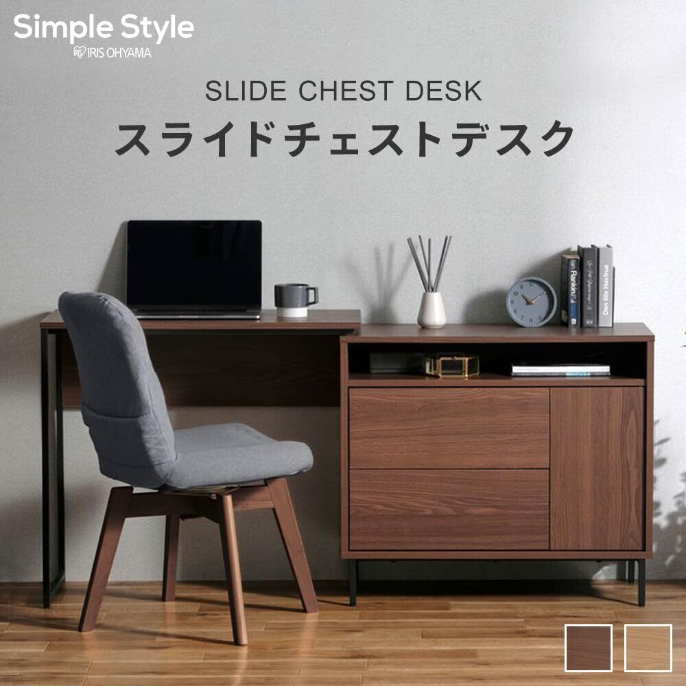 アイリスプラザ デスク 学習机 書斎 スライドチェストデスク スライドデスク 収納 ウッドデスク 木製 リモートワーク 勉強机 PCデスク 机 スタイリッシュ リビング 寝室 北欧 在宅 おしゃれ 棚 キャビネット ナチュラル SLCD-790