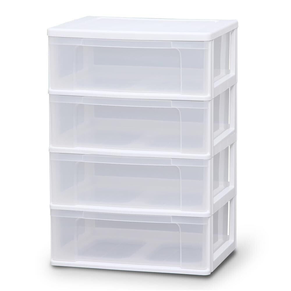 アイリスオーヤマ チェスト ワイド 4段 幅63×奥行50×高さ91.7cm ホワイト/クリア 白 プラスチック N654