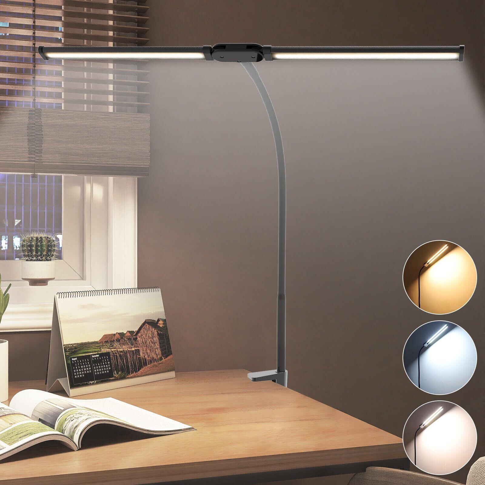 Esbaybulbs デスクライトled クランプライト 160個led スタンドライト ダブルヘッド 3色温度(電球色・白色・昼光色)10段階調光 角度調整可能 目に優しい テーブルライト 電気スタンド 卓上 読書灯 学習、仕事、読書に最適