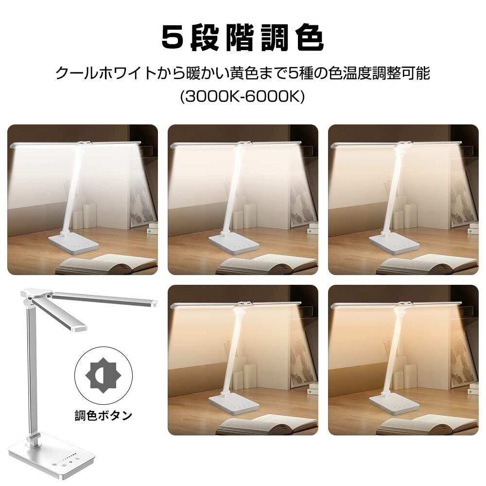 ♥【五種類照明モード・タッチ調色温】LEDデスクランプには無極調光と5つの照明モードがあり、作業、勉強、読書、リラックスに理想的な光レベルを提供します。5000K~6000K:昼の光りに近く温色で、精神力を集中させ、仕事、勉強等の高集中力必要な場合に!4500K:自然な光りで、人をリラックスさせ、落ち着いて、読書等考える場合に!3000K~4000K:夕方の光りに近く暖かくやわらかい温色で、雰囲気作り、ライトナイトに!敏感なタッチコントロールパネルで照明モードを自由に切り替えることができます。