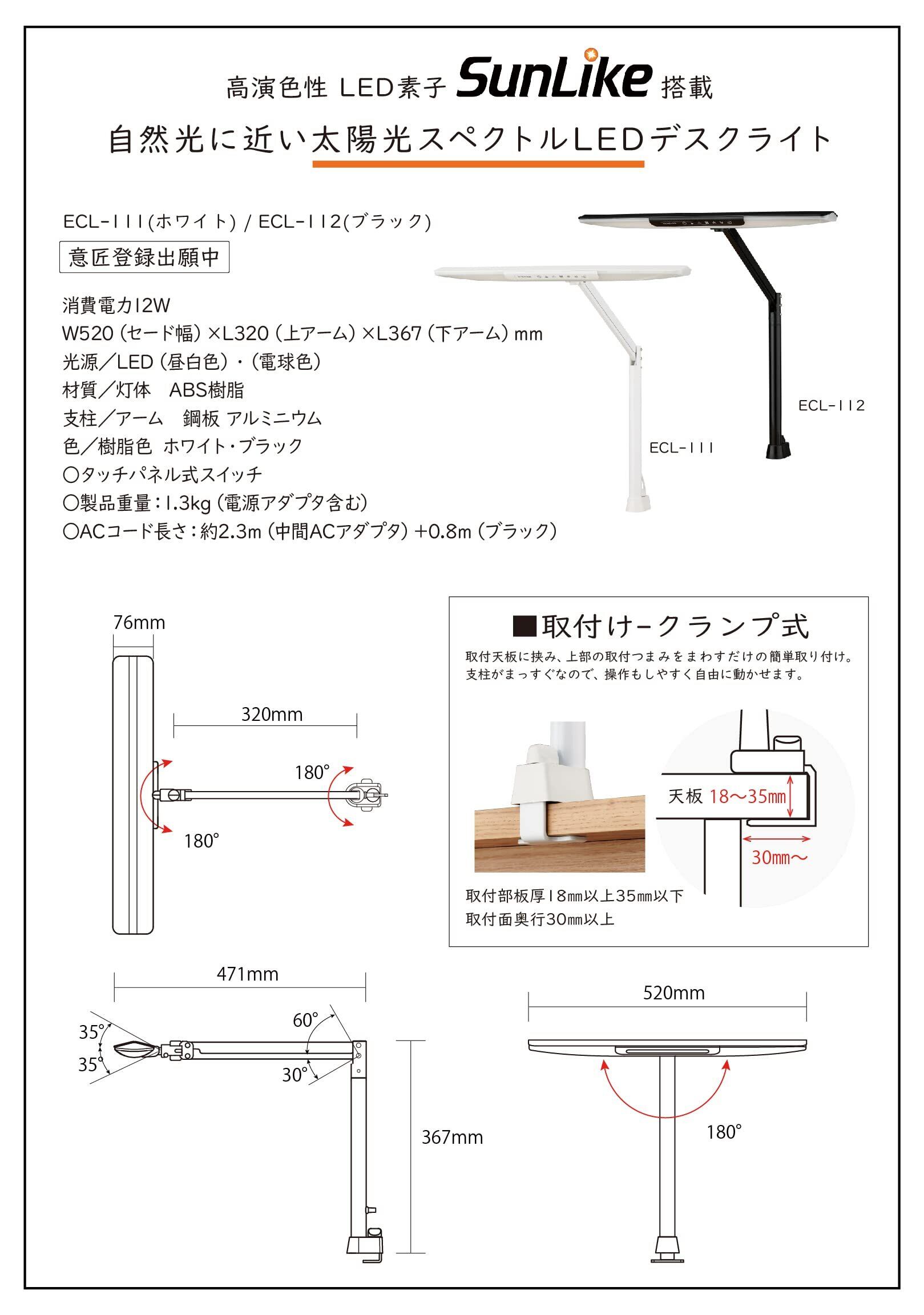高演色性LED素子SUNLIKE搭載 自然光に近い太陽光スペクトルLEDデスクライト
