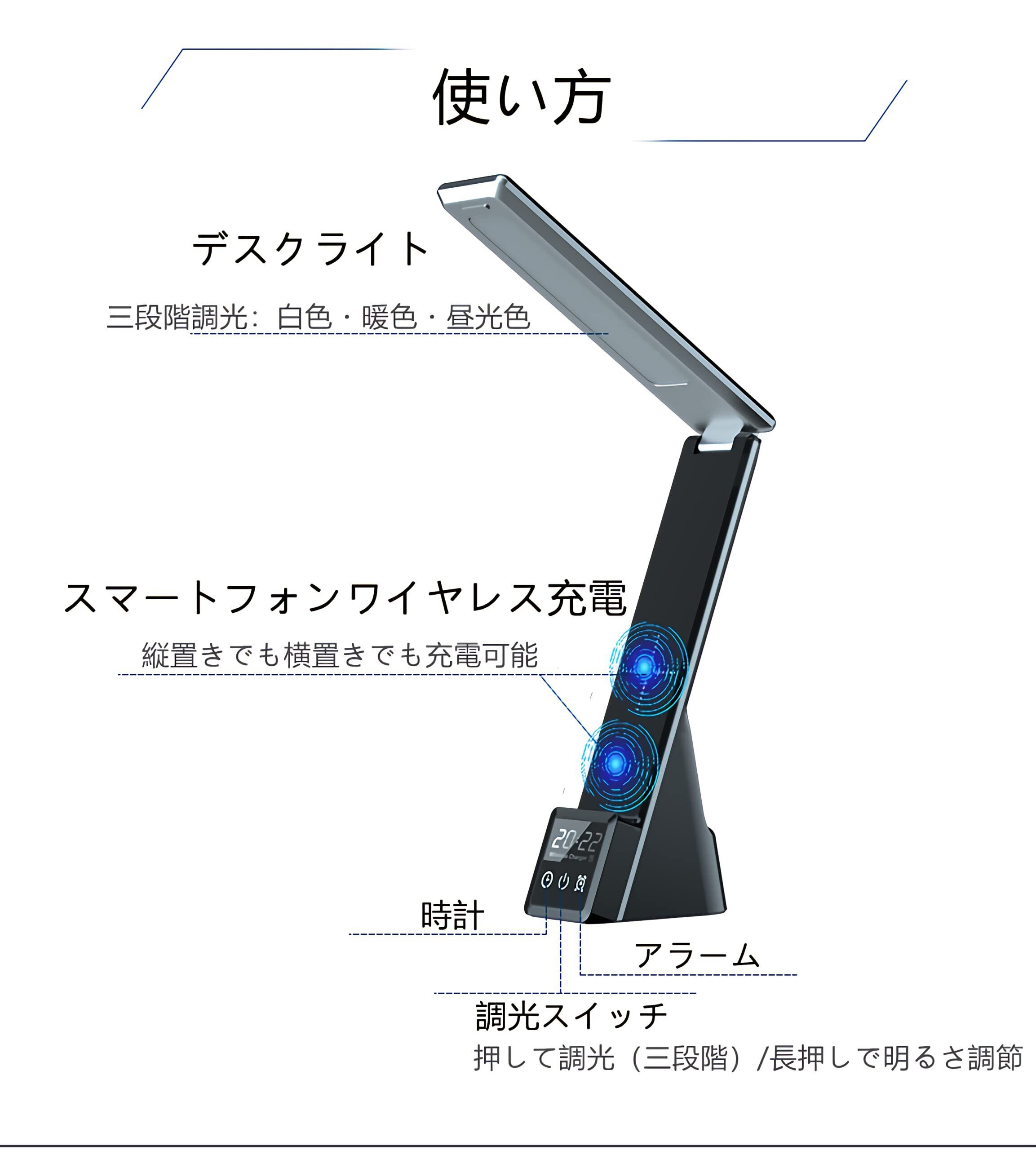明るさの調整はスイッチに触れるだけで操作可能なタッチセンサー方式です
