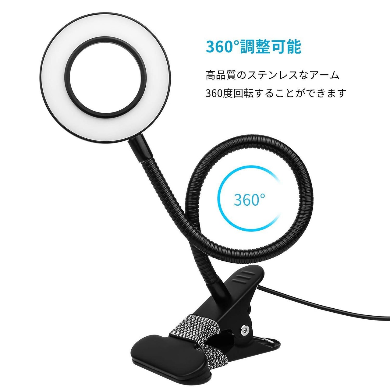 Semlos クリップライト24 LED 電気スタンド 3階段調色 10階段調光 800ルーメン 5w LEDライト 360°回転 読書灯 読書ランプ 目に優しい 記憶機能 仕事 勉強 卓上 勉強機 本棚 ベッドサイド 寝室 書斎 オフィス イーゼル(直径8.8cm)
