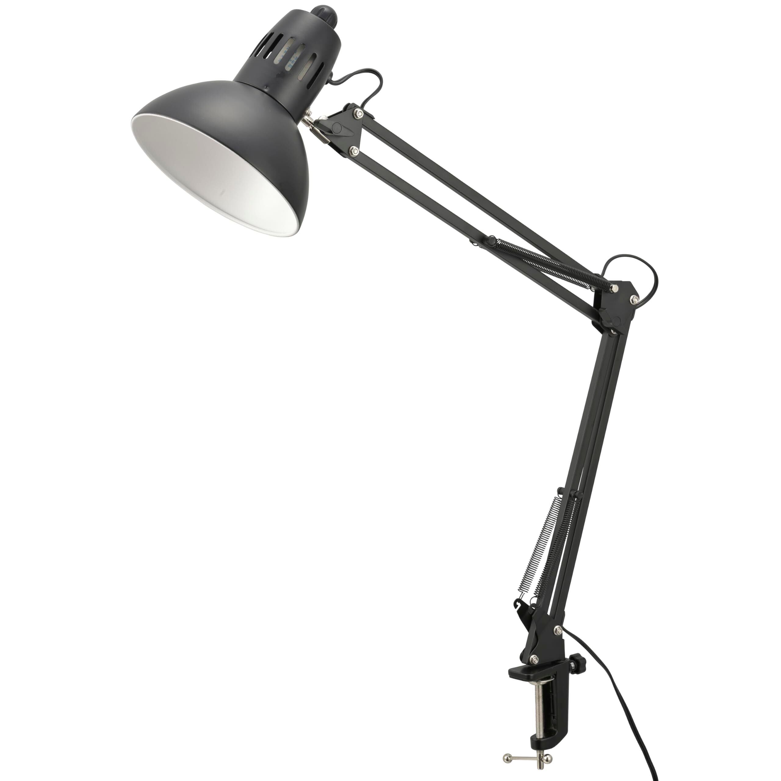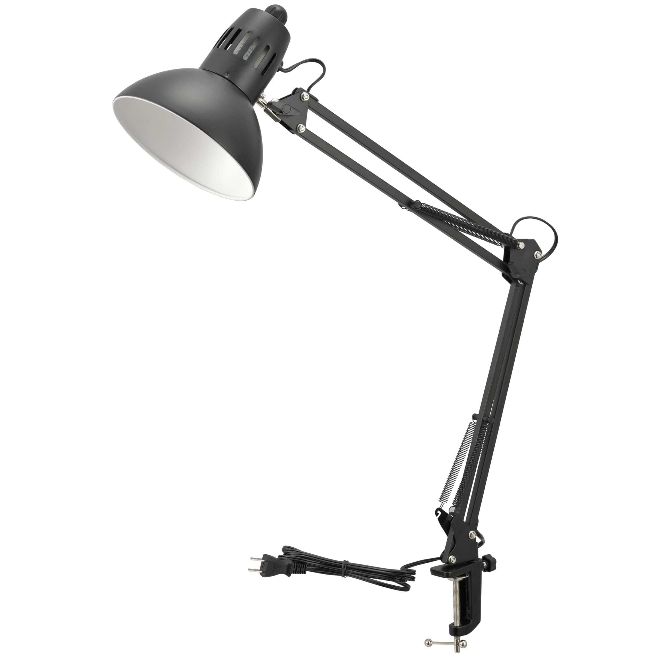 【 特 長 】 ◆机に簡単取り付け、クランプ式 ◆角度自由自在、必要な場所に光が届くスイングアーム ◆適応電球は口金E26(サイズ全長120mm/最大径60mm以下)の白熱電球(60W以下)、電球形蛍光灯(15W以下)、LED電球(10W、質量110g以下) ◆カラーはブラック