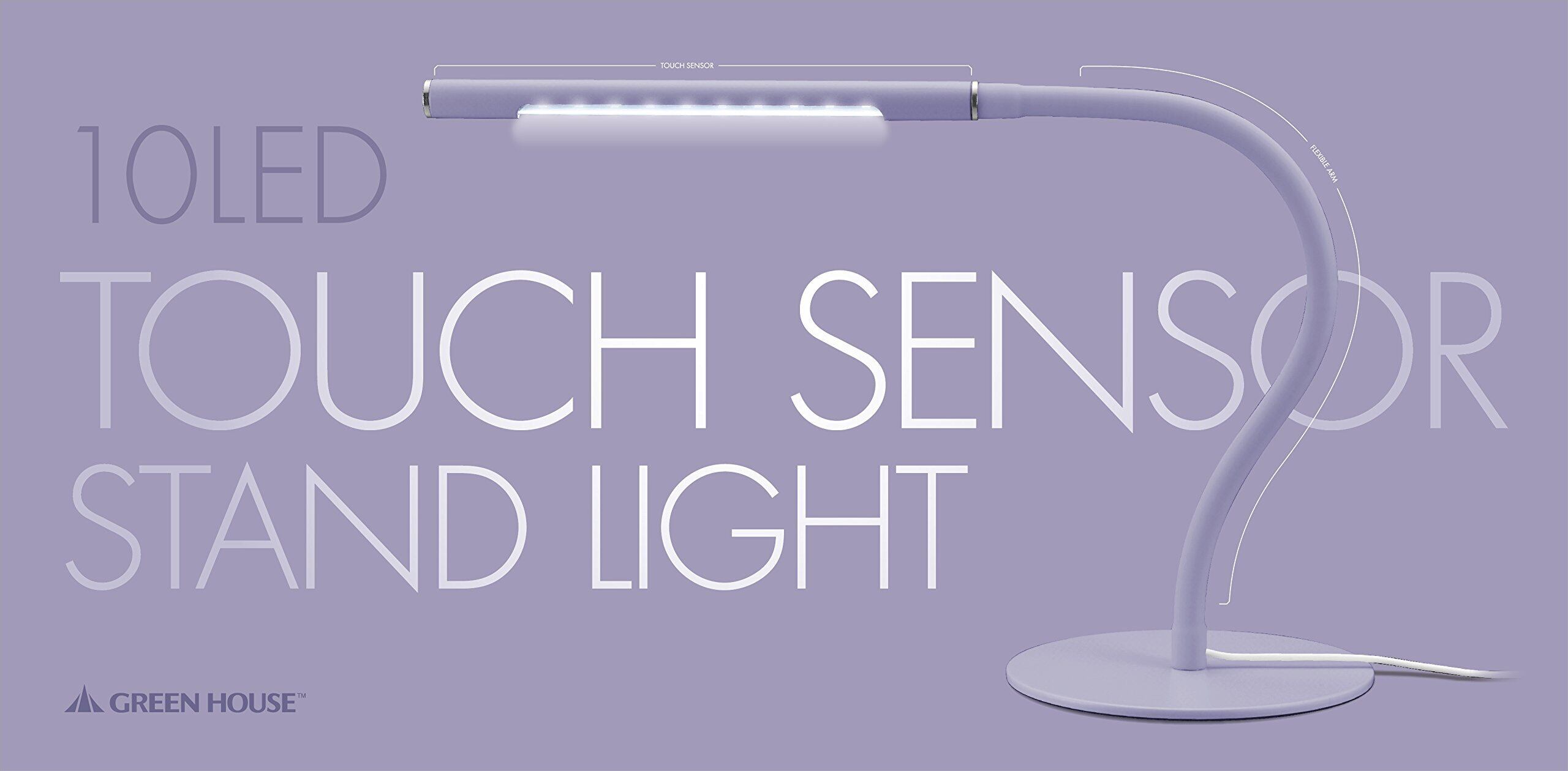 グリーンハウス タッチセンサー 白色LED 調光機能 搭載 自由に曲げられるフレキシブルアーム LEDスタンドライト パープル GH-ULEB10-PU