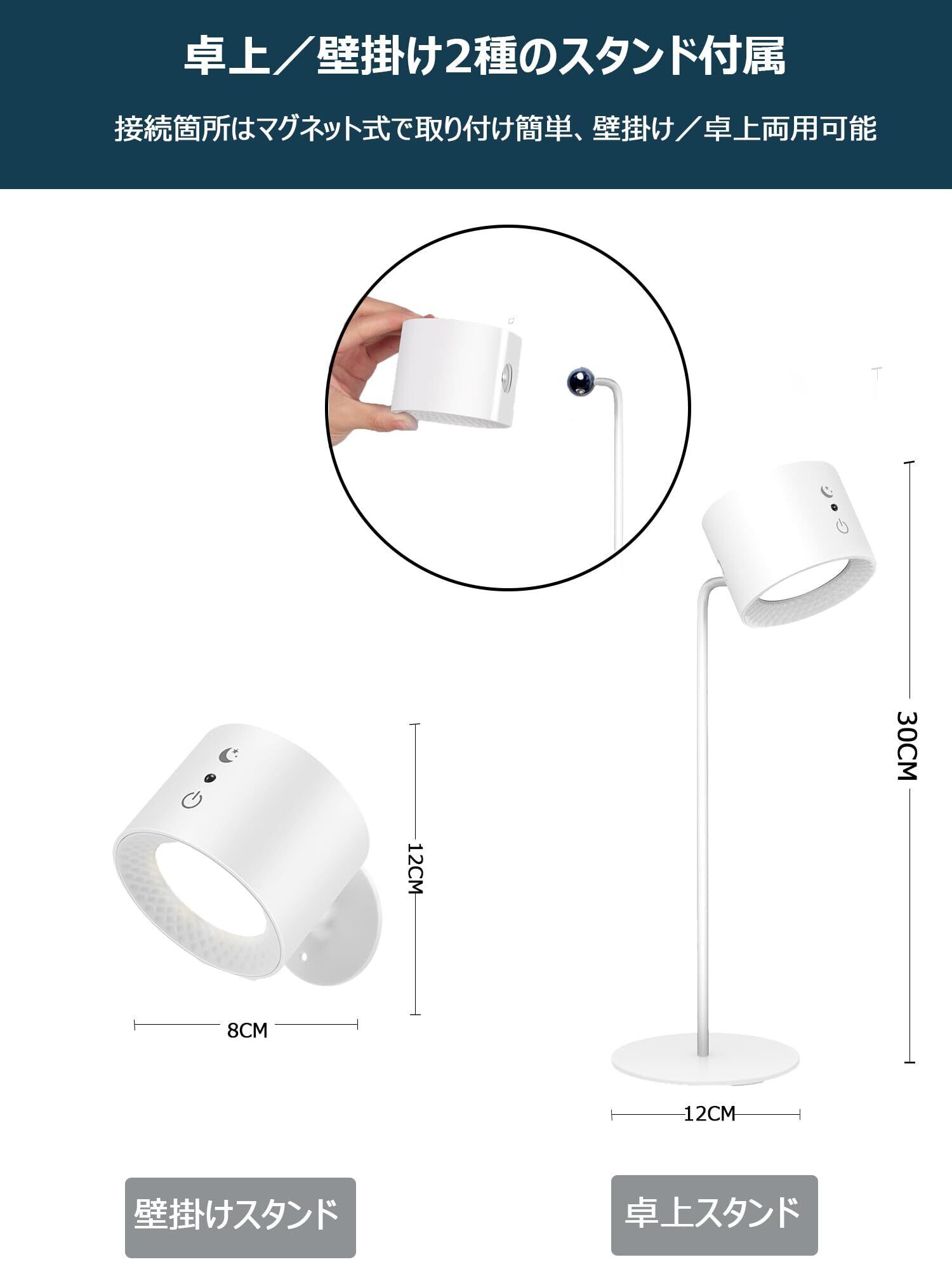 デスクライト BEXMON テーブルランプ 間接照明 スタンドライト USB-C充電式 無段階調光 3000/4500/6500K 3色切替 卓上ライト コードレス タイム機能 マグネット 360°回転 おしゃれ 読書/テーブル/卓上/デスク/寝室 日本語取扱説明書 ホワイト 白