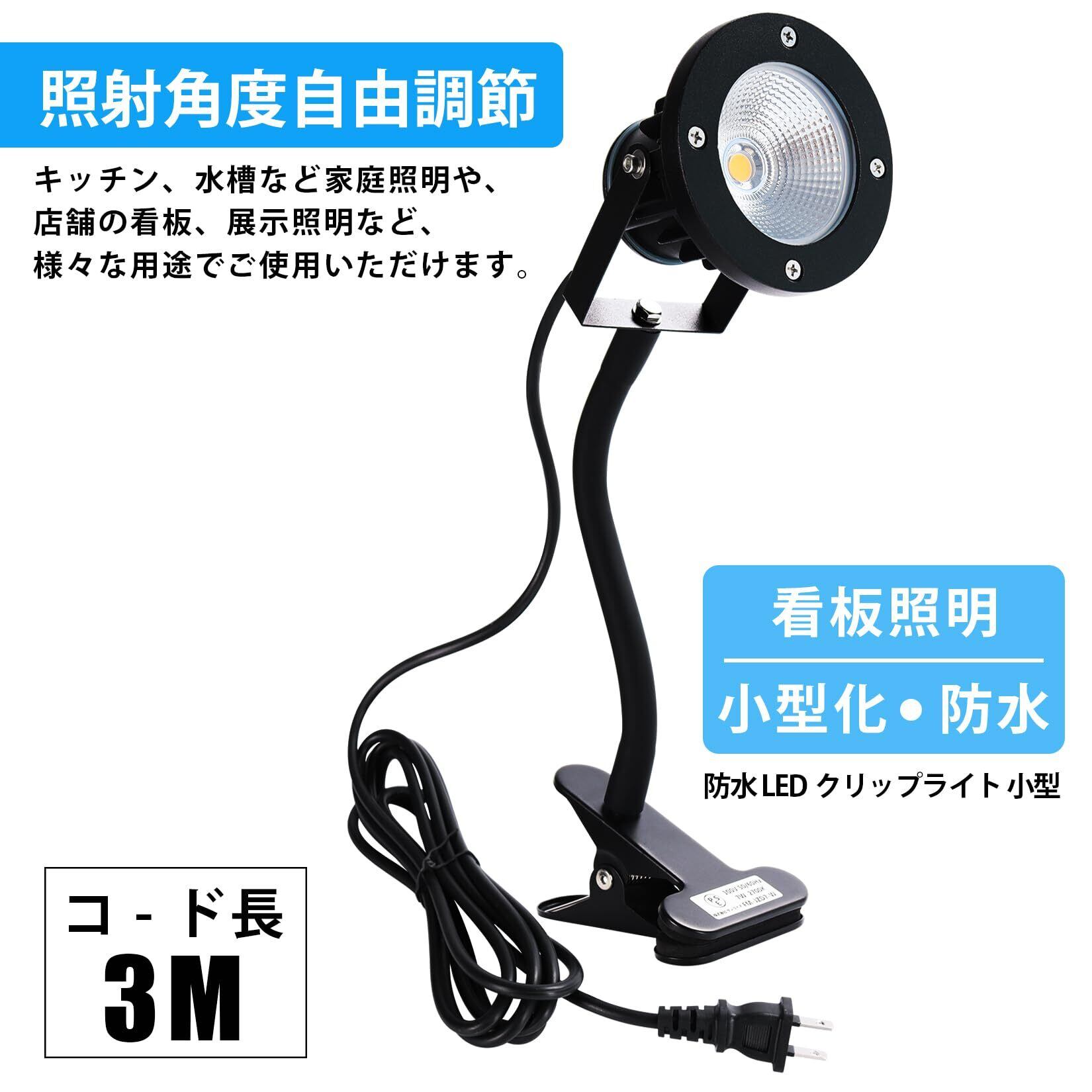 昼光色 防水 LEDクリップライト 小型 防雨 防水型 昼光色 6000k 7W 60W型相当 スイッチなし コード長3m 看板用 黒板用照明 店舗看板用 店頭看板 LEDライト 電気スタンド デスクスタンド アームライト ピッコロライト アウトドア エクステリアライト (スイッチなし 昼光色)