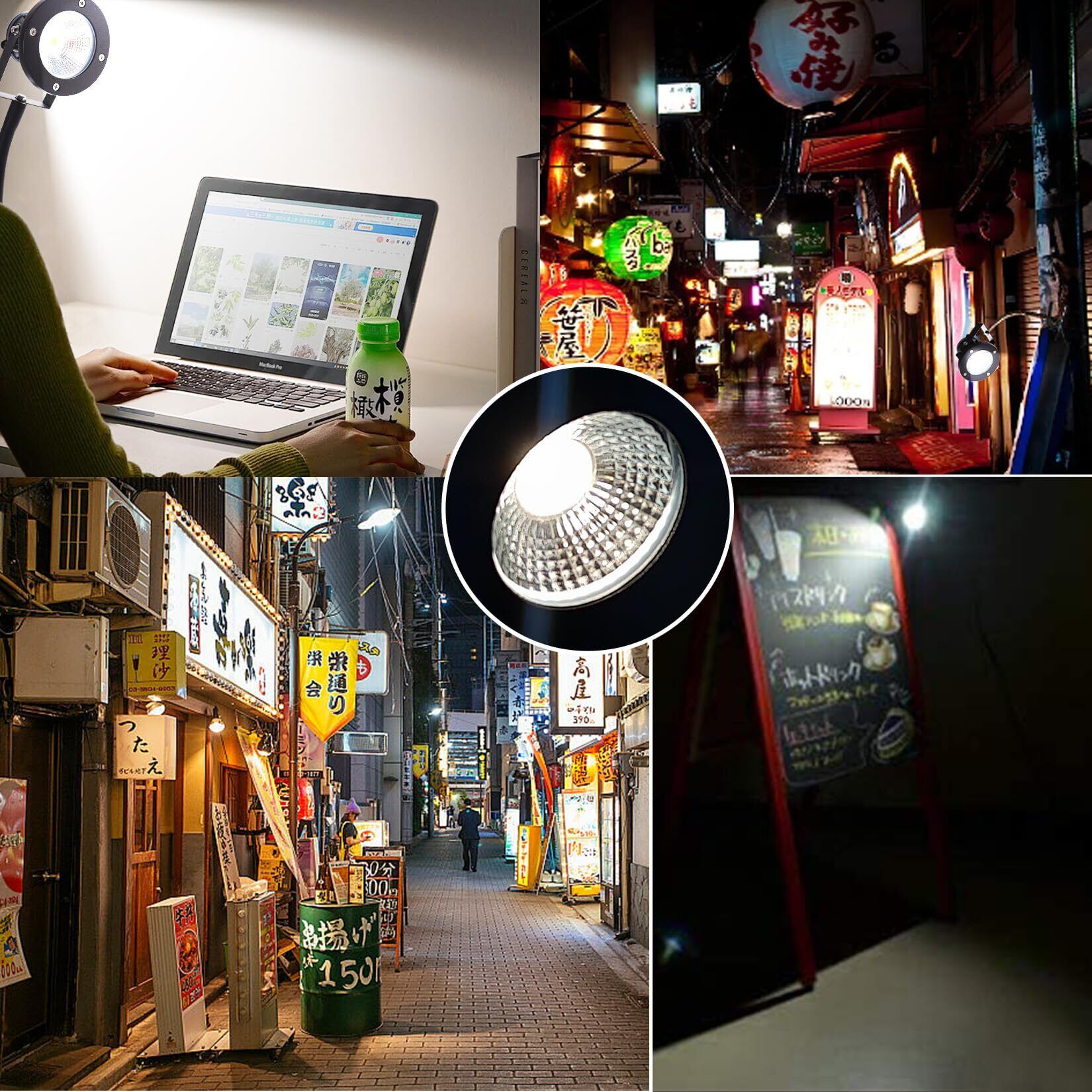 【2024最新版仕様】電圧:AC85V~265V / 消費電力:7W / 色温度:昼光色 6000K / ルーメン:630Lm / 照射角度:120°/ クリップくわえ幅:約10~60mm / 防水規格:IP65 / 電源コード:約3m ※付属品:六角レンチ1本 ※コンセント式で直接差し込むだけで点灯可能。