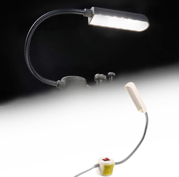 【どこでも設置する】 ミシンライトはグースネックランプなので、LEDライトの照明位置を簡単に調整できます。デスクライトや夜ミシン用ライトとして使うのが最適です。グースネックランプの台の下に磁石付きで、ミシンに吸い付けます。