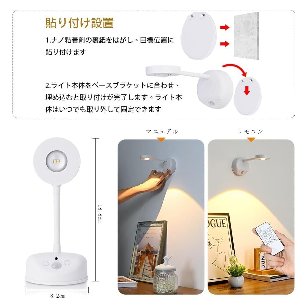 ブラケットライト スポットライト3段階調光調色360°照明角度調整 コードレス 工事不要 ウォールライト 玄関ライト 壁取付ランプ 間接照明 壁掛け照明 玄関照明 ナイトライト デスクライト 壁掛けランプ ウォールランプ ベッドサイドランプ 卓上ライト (1200mAh)