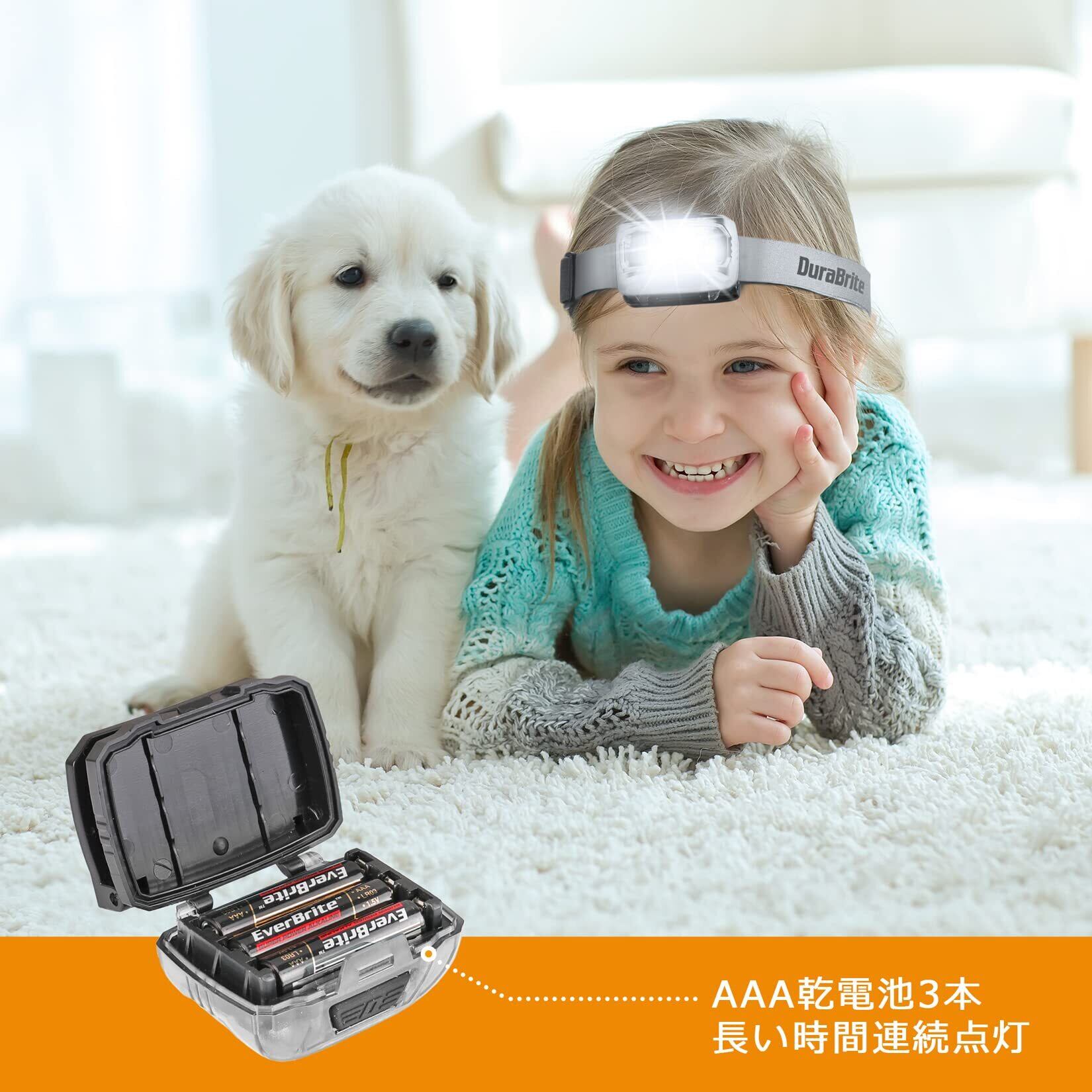 DuraBrite ヘッドライト 電池式 LEDヘッドランプ 2個セット 白&赤&緑ライト 5つ点灯モード 65°角度調整可能 超軽量 高輝度 単4形電池6本付き 防水 アウトドア用 夜釣り 登山 キャンプ 散歩 作業 災害 停電用 グレー