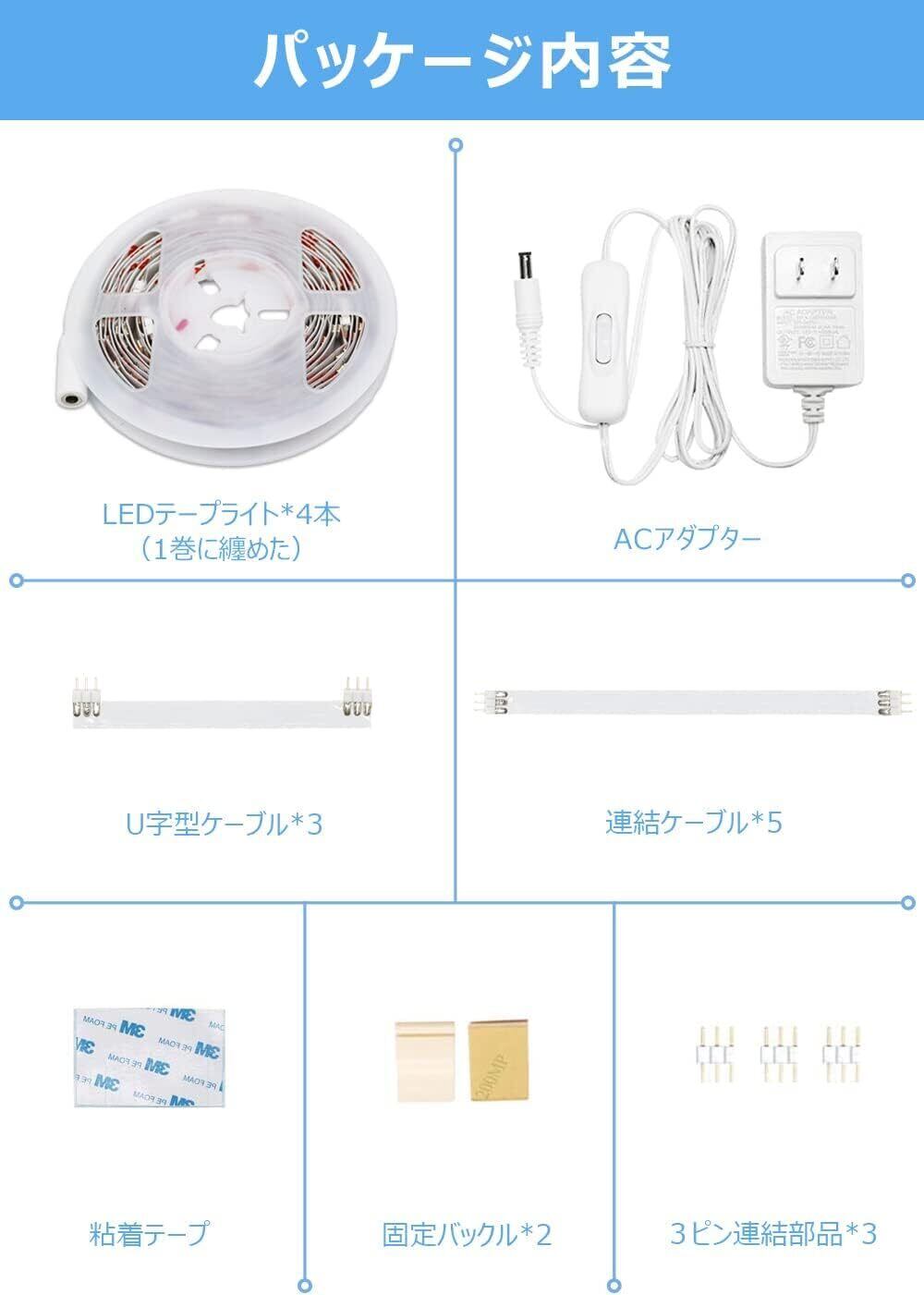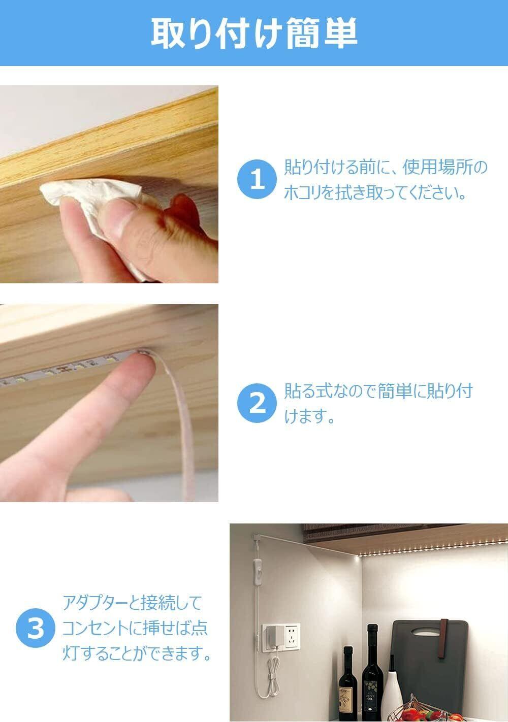 【設置簡単・自由にDIY可能】テープライトは工事不要、簡単に貼り付けます、壁を傷をつけません。0.5m*4本ledキャビネットライトなので、設置場所に合わせて自由に組み合わせできます。