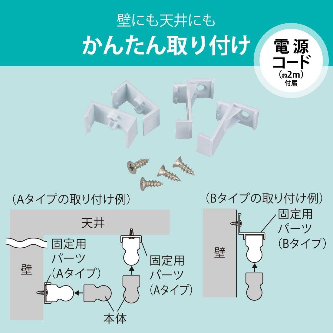 ●電気工事不要、簡単取り付け ●電源コード(約2m)付属 ●面発光・高配光で連結部まで明るい ●最大9本まで連結可能 ●光源色は昼光色 ●消費電力8.8W、全光束980ルーメン ●クローゼット、階段・廊下、店舗などの照明、商品ディスプレイに ●屋内専用