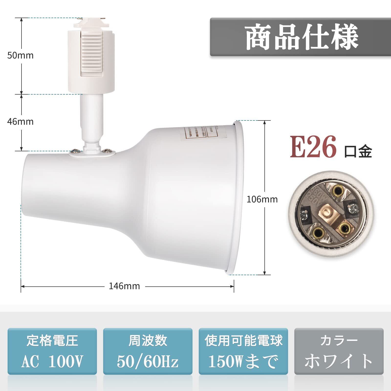 DiCUNO ダクトレール用 スポットライト E26口金 ライティングバー用スポットライト LED電球対応 レールライト 天井 照明器具 角度調節 LED対応 白い 3個入 (電球なし)