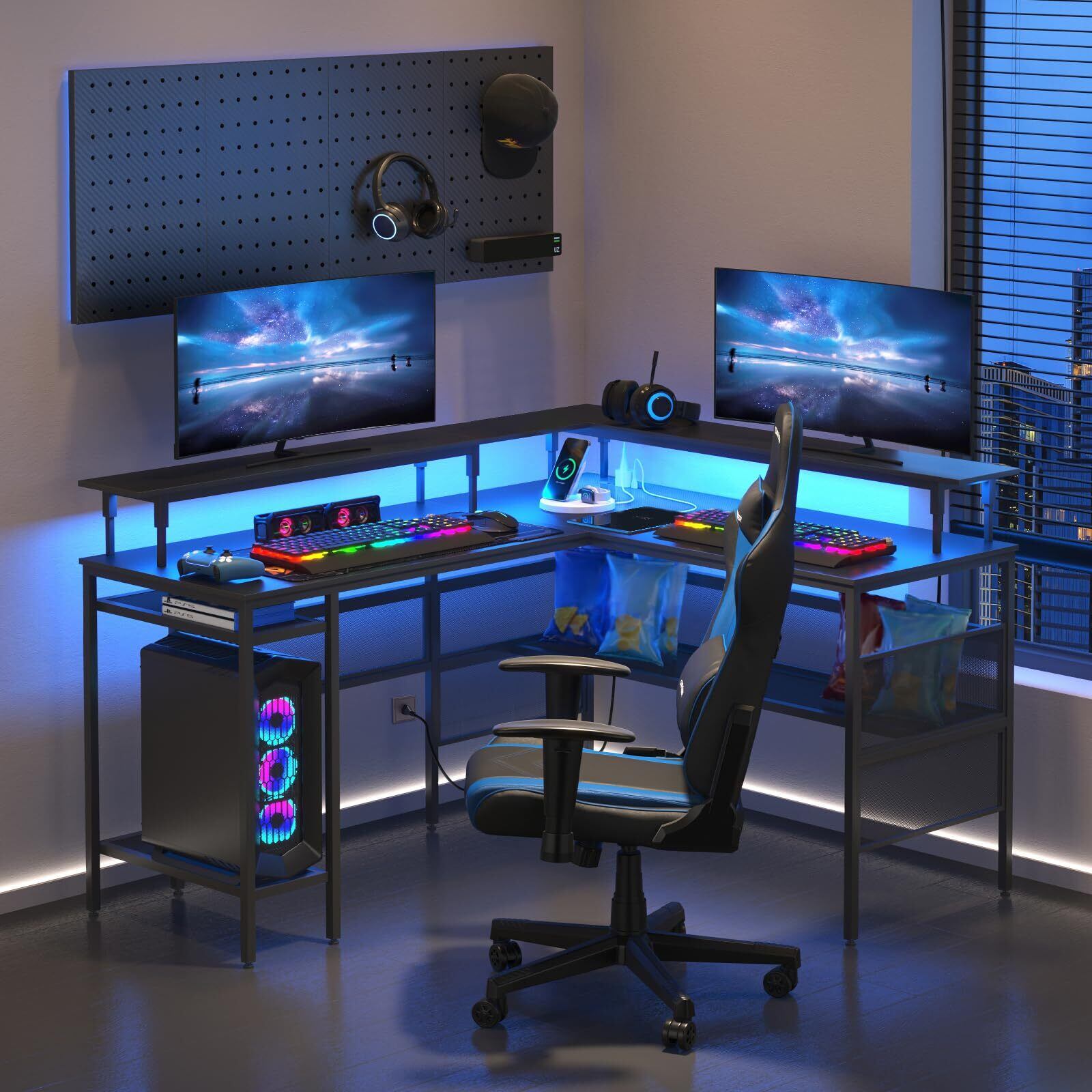 電源ソケットとUSB充電ポート付きゲーミングデスク
